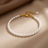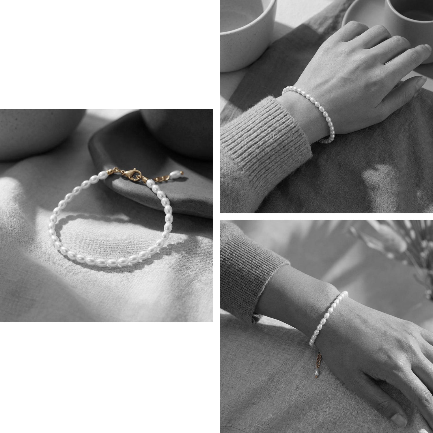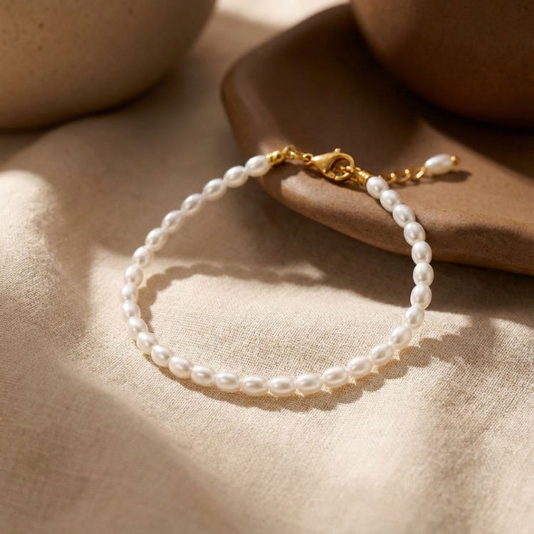 Dieses elegante Perlenarmband verbindet zeitlose Schönheit mit modernen goldenen Akzenten. Die zarten, gleichmäßig glänzenden Perlen wirken edel und feminin, während der vergoldete Verschluss dem Design eine luxuriöse Note verleiht. Dank der verstellbaren Länge passt das Armband perfekt an jedes Handgelenk – ideal für den Alltag, besondere Anlässe oder als stilvolles Geschenk.