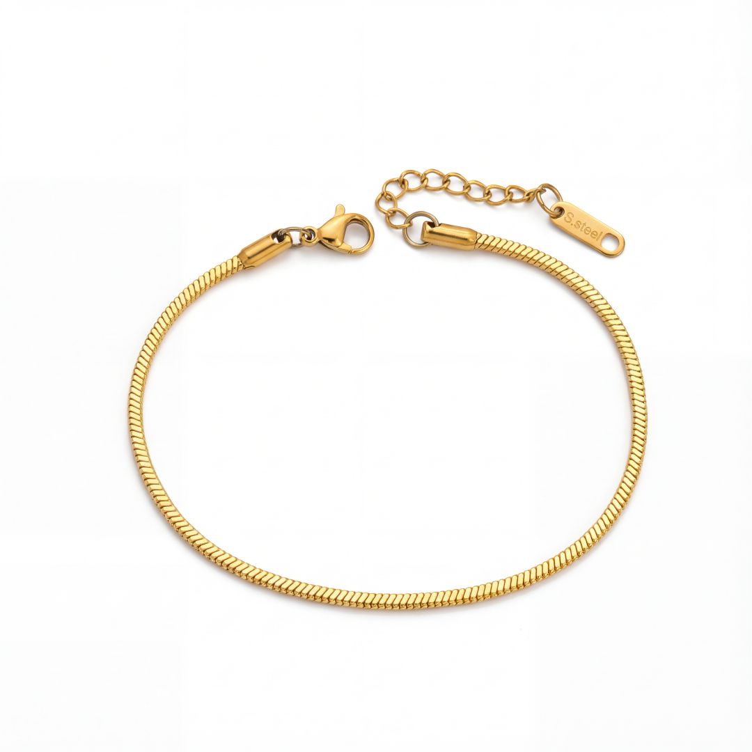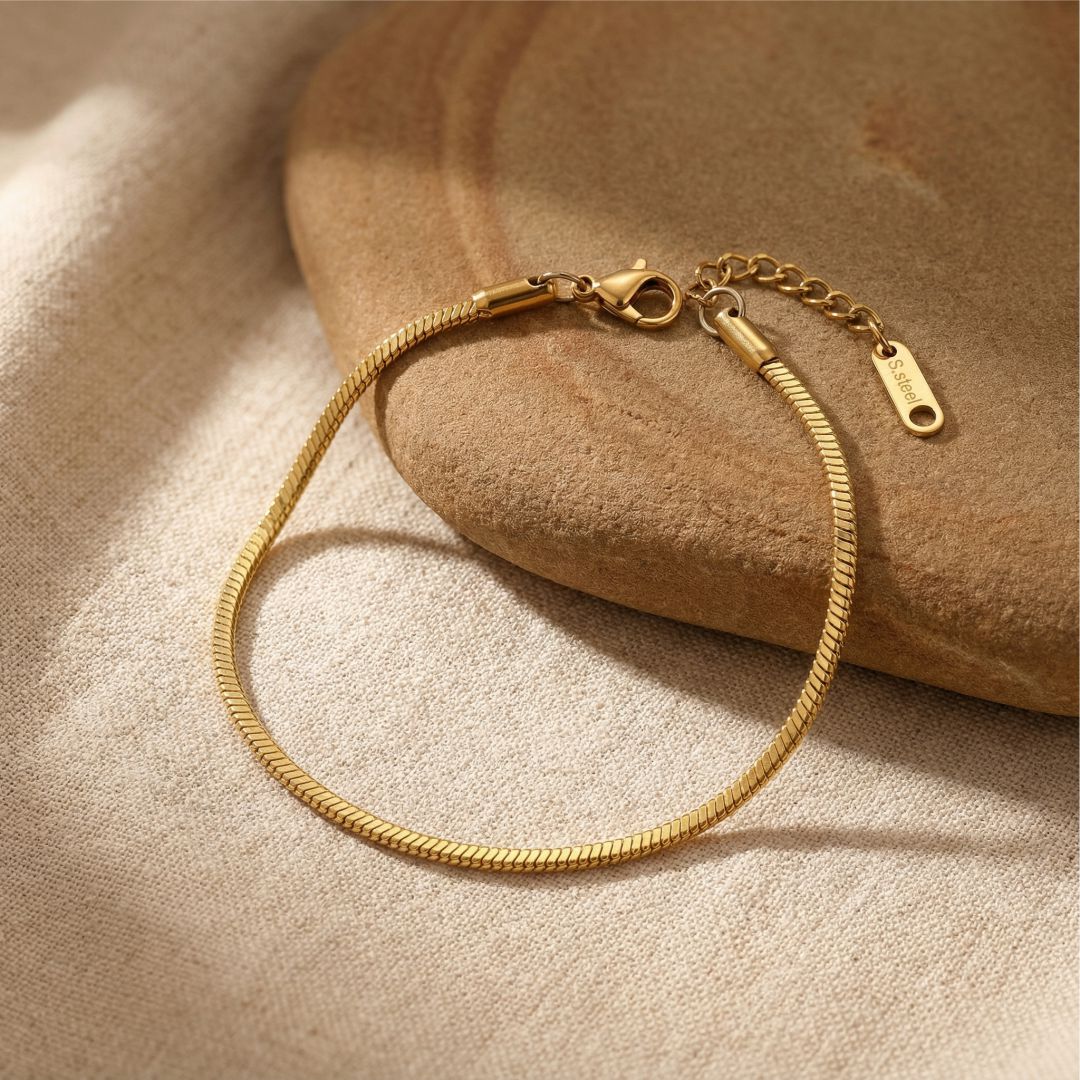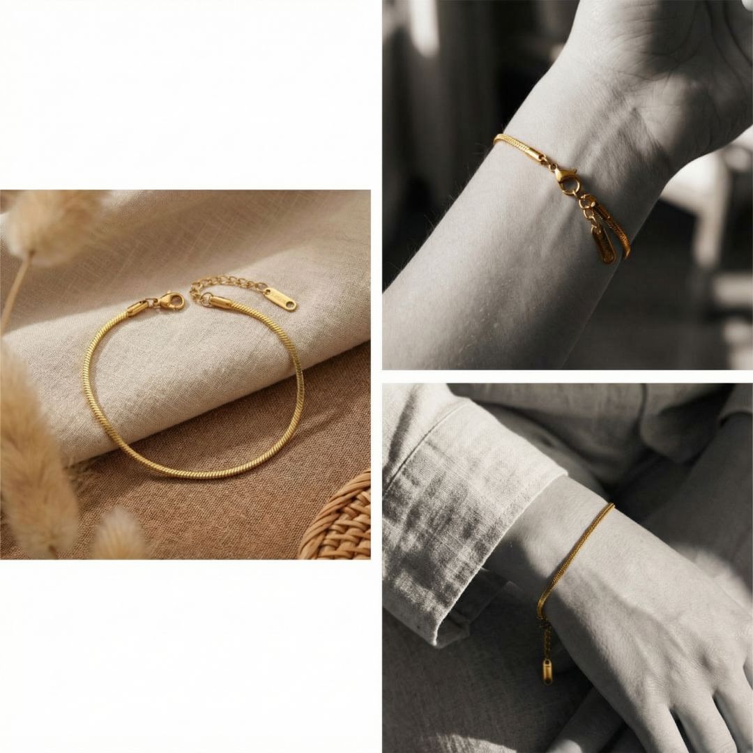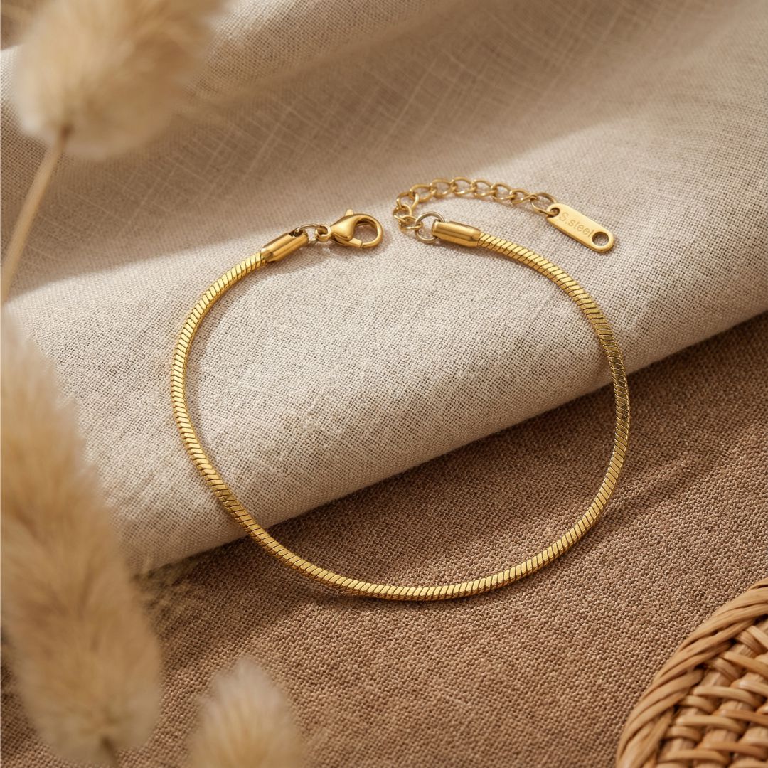 “Ein minimalistisches, edles Armband mit 18K-Goldfinish – perfekt, um jeden Look sofort eleganter und luxuriöser wirken zu lassen.“