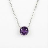 Der fein geschliffene Amethyst strahlt in seiner silbernen Fassung besonders intensiv und macht die Kette zu einem eleganten Blickfang.