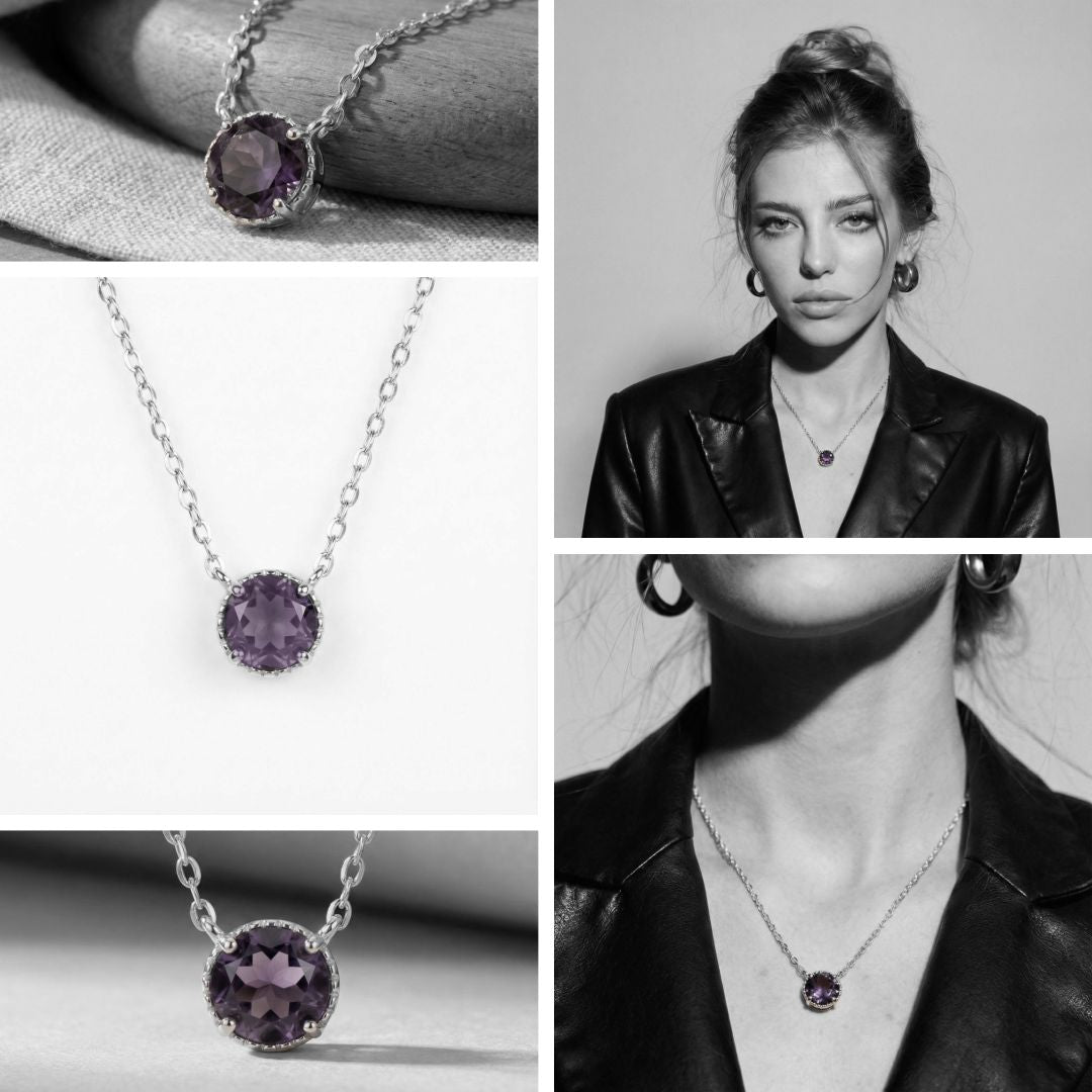 Die AmethystGlanz Kette fasziniert mit einem tiefvioletten Stein, der für Ruhe, Klarheit und innere Balance steht.