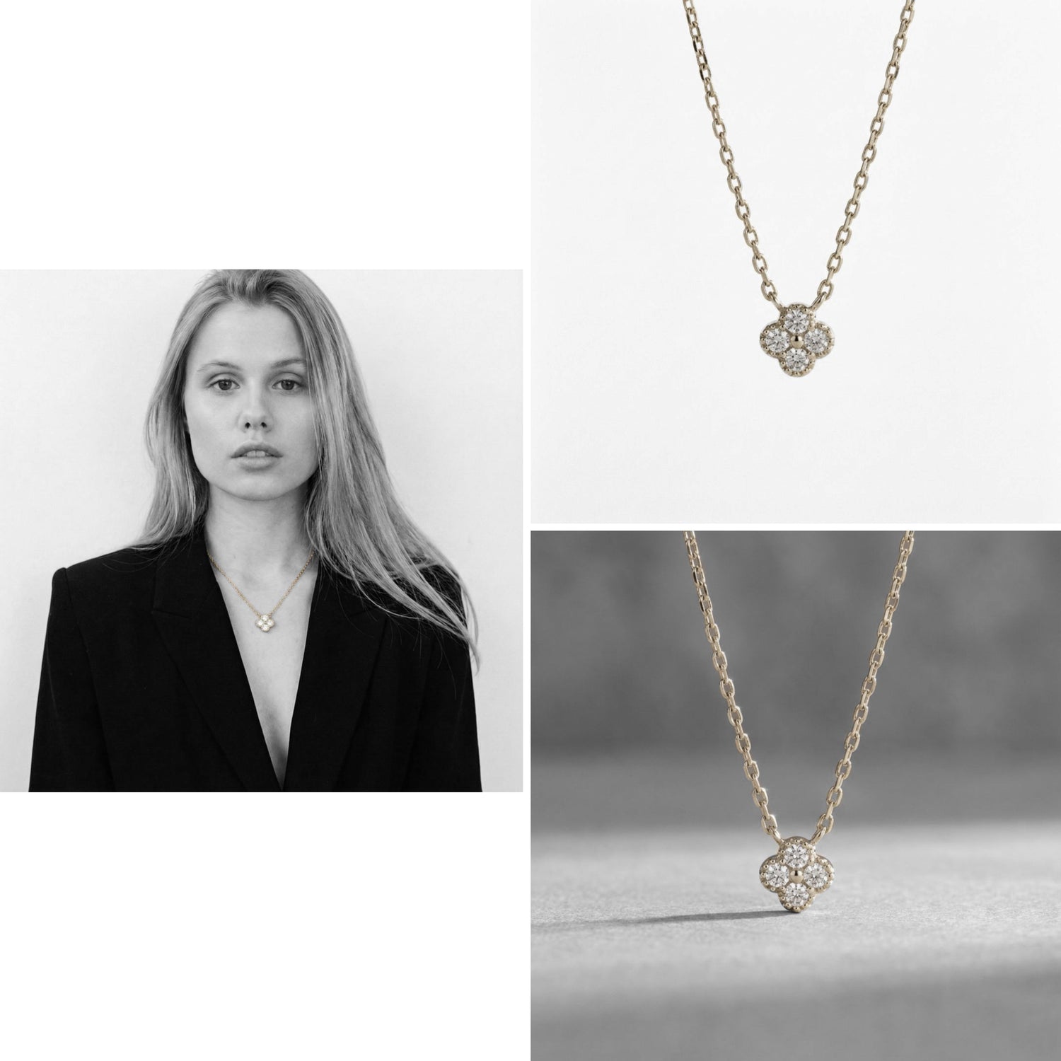 "Diese zarte goldfarbene Halskette mit funkelndem Blütenanhänger verleiht jedem Look eine elegante, feminine Note. Ein zeitloses Schmuckstück, das sich perfekt als Geschenk oder täglicher Begleiter eignet."