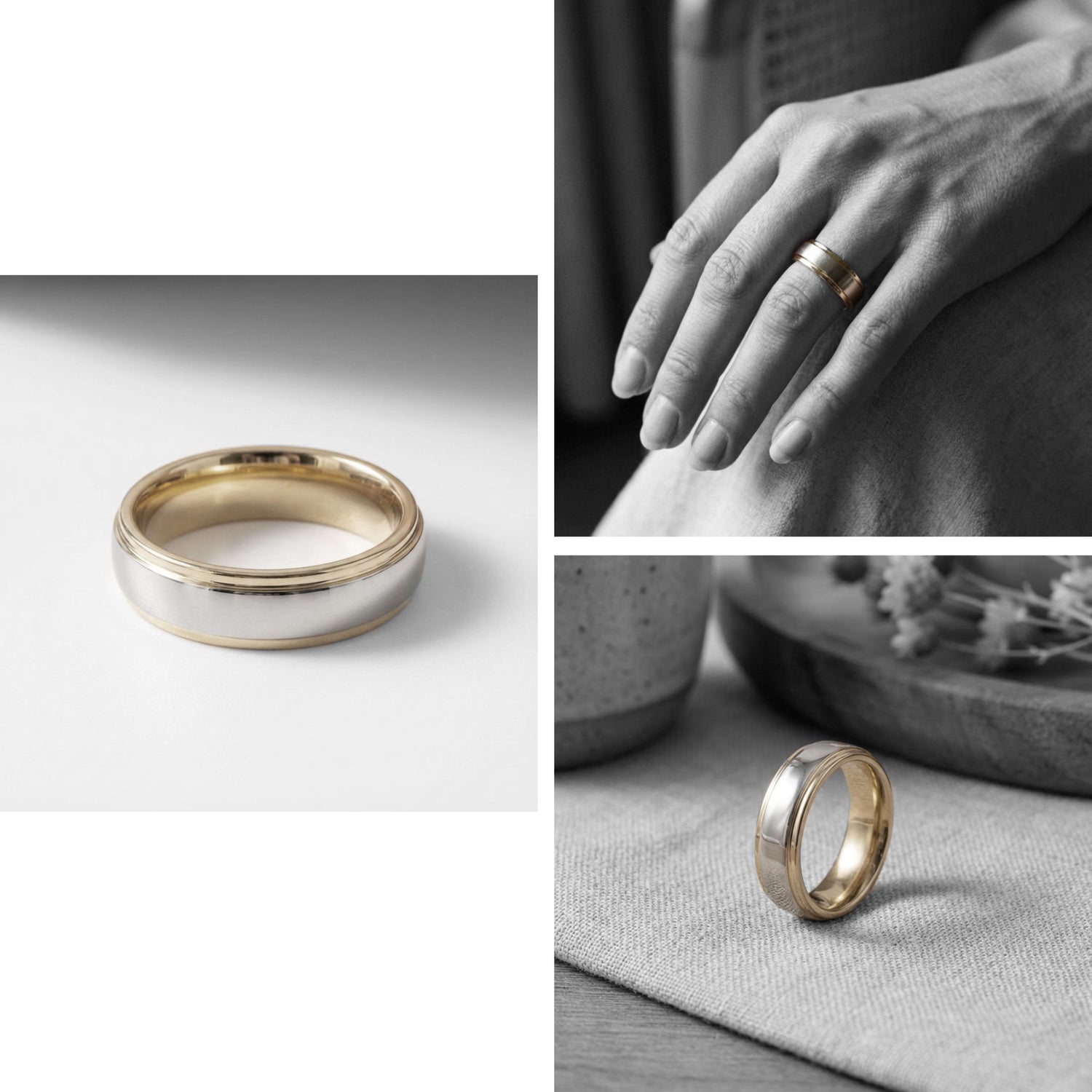 "Dieser elegante zweifarbige Edelstahlring kombiniert Gold- und Silberoptik zu einem modernen, zeitlosen Design. Robust, hautfreundlich und ideal für den Alltag oder als stilvolles Geschenk."