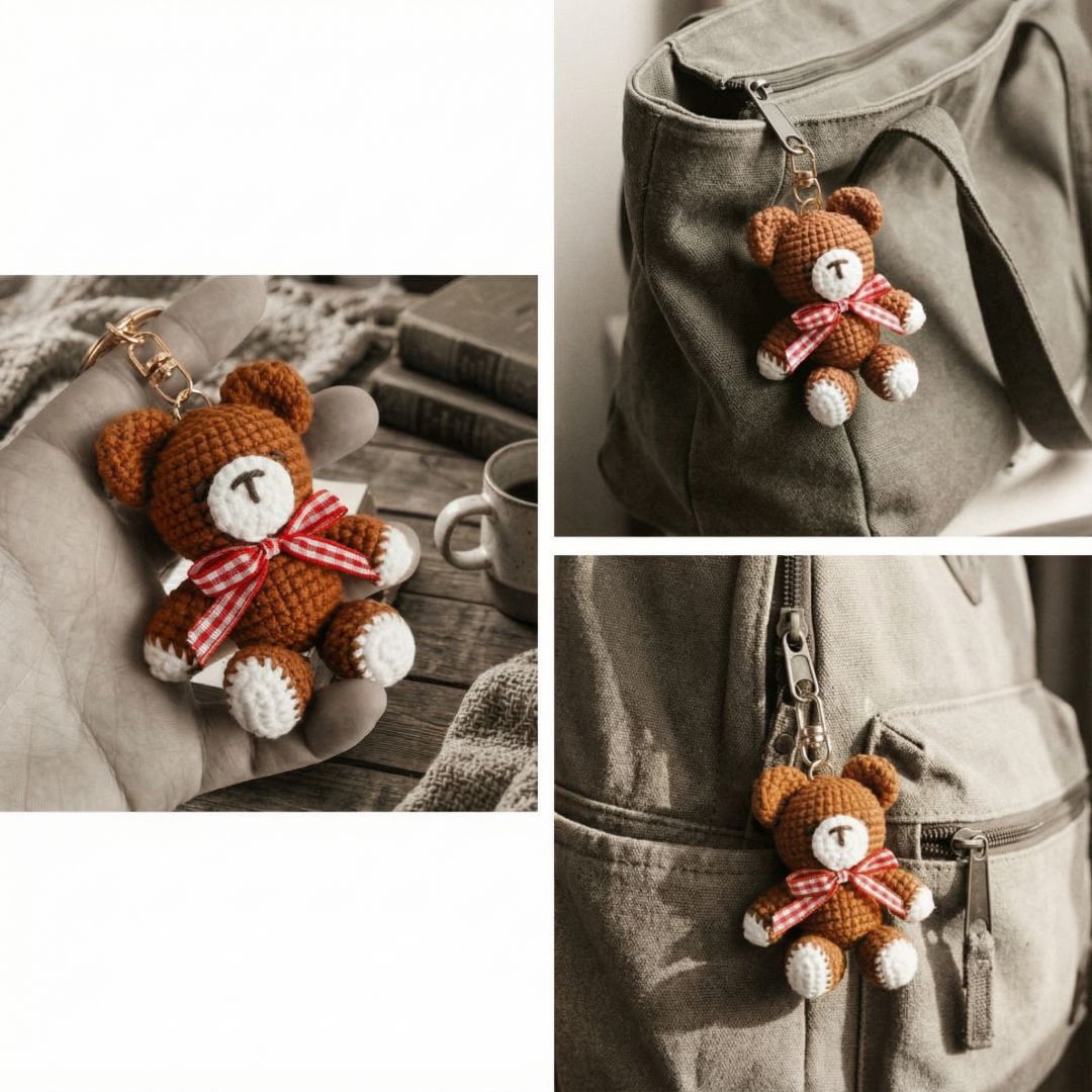 Dieser kleine Häkelbär ist nicht nur ein süßer Anhänger, sondern ein liebevolles Accessoire, das jeder Tasche Persönlichkeit verleiht. Ideal als Geschenk – oder um deinem Alltag etwas Wärme & Charme hinzuzufügen.