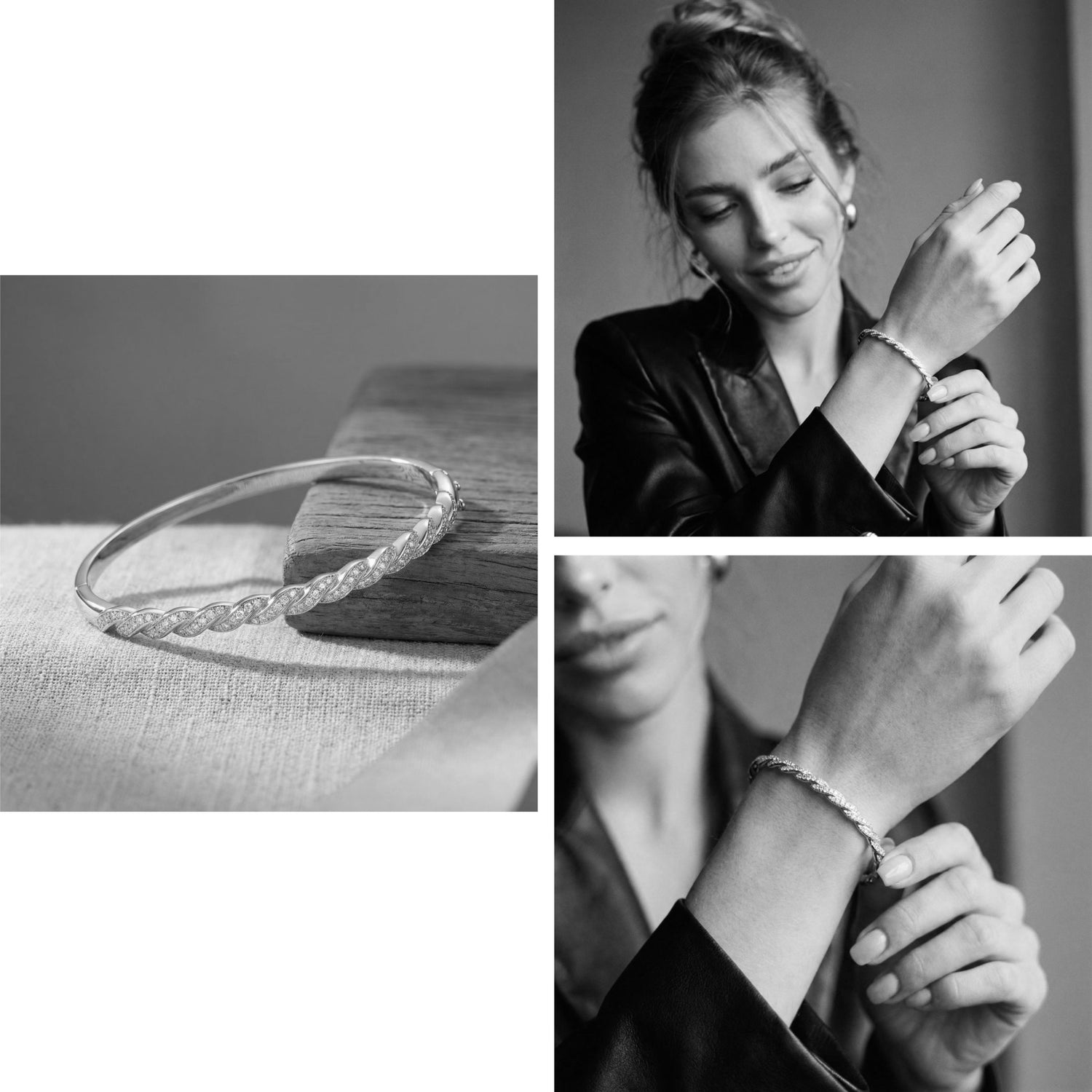 Ein eleganter, gedrehter Armreif aus echtem Silber, der Luxus und Alltag perfekt verbindet – funkelnd, hochwertig und ideal für Frauen, die zeitlose Eleganz lieben.